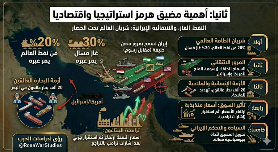 - إيران تسمح بمرور سفن لدول حليفة توافق عليها مقابل رسوم، لكن تغلقه على أمريكا/إسرائيل/الحلفاء.