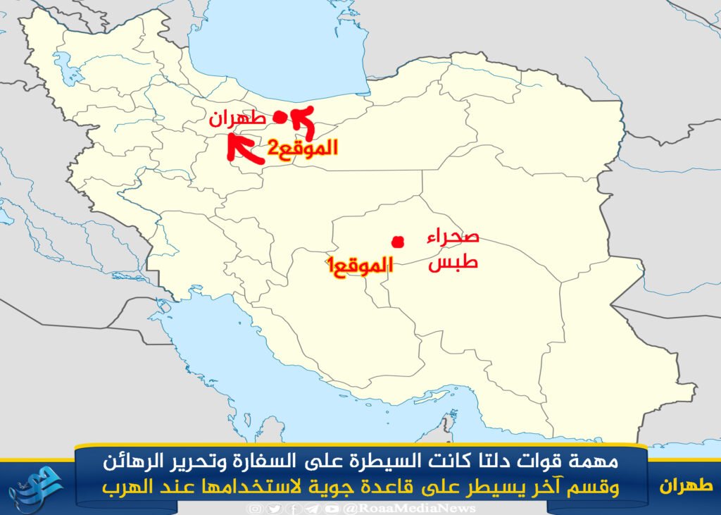 وتبدأ العملية بقدوم سيارات يحضرها عملاء ال CIA داخل طهران للموقع بعد قطع كامل للكهرباء عن العاصمة، وتنقسم قوات الدلتا قسمين: قسم يسيطر على قاعدة عسكرية جوية جنوب غرب طهران لكي تهبط طائرات C141 الأمريكية العملاقة، وقسم آخر يقتحم السفارة داخل العاصمة ويحرر الرهائن