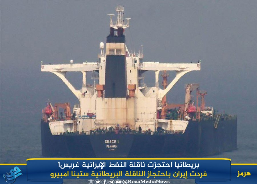4 يوليو 2019 استولت بريطانيا على ناقلة النفط الإيرانية جريس1 بالقرب من جبل طارق والتي كانت بطريقها إلى سوريا.