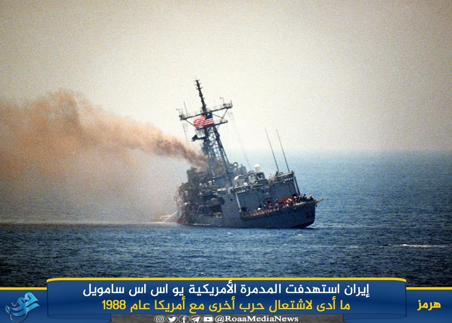 في 18 أبريل 1988 قامت البحرية الإيرانية بإعطاب المدمرة الأمريكية USS Samuel أيضا عبر زراعة ألغام بحرية في مضيق هرمز، ما أدى لأحداث فتحة في المدمرة الأمريكية بقطر 4.5 متر وأوشكت على الغرق قبل أن يتم سحبها إلى موانئ دبي. فأعلنت واشنطن حربا مباشرة على الجيش الإيراني دمرت خلالها سفنا وفرقاطات إيرانية كثيرة، كما ردت إيران بهجمات الزوارق السريعة التي دمرت ناقلات نفط غربية، وكانت هذه الحادثة أكبر خسارة للبحرية الإيرانية.