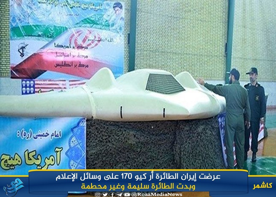 أسقطت إيران طائرة استطلاع أمريكية متطورة من دون طيار من نوع RQ170 فوق مدينة كاشمر شرق إيران عبر اختراق تردداتها وإنزالها بشكل سليم في صحراء إيرانية فيما ادعت أمريكا أن الطائرة تحطمت، إلا أن الإيرانيين عرضوا الطائرة لوسائل الإعلام وبدت سليمة تماما.