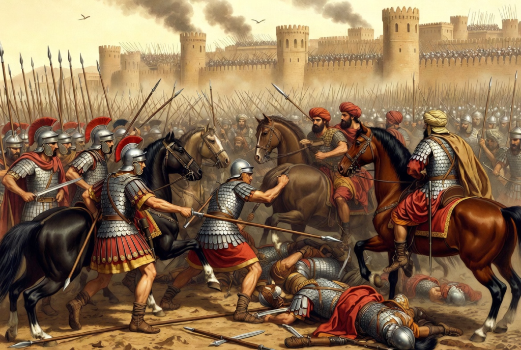 ومع هذا الاتساع بدأ الاحتكاك مع امبراطورية الفرس في الشرق، وأصبح النظام الدولي يشهدا صراعا بين قطبين عالميين هما امبراطورية الروم وامبراطورية فارس